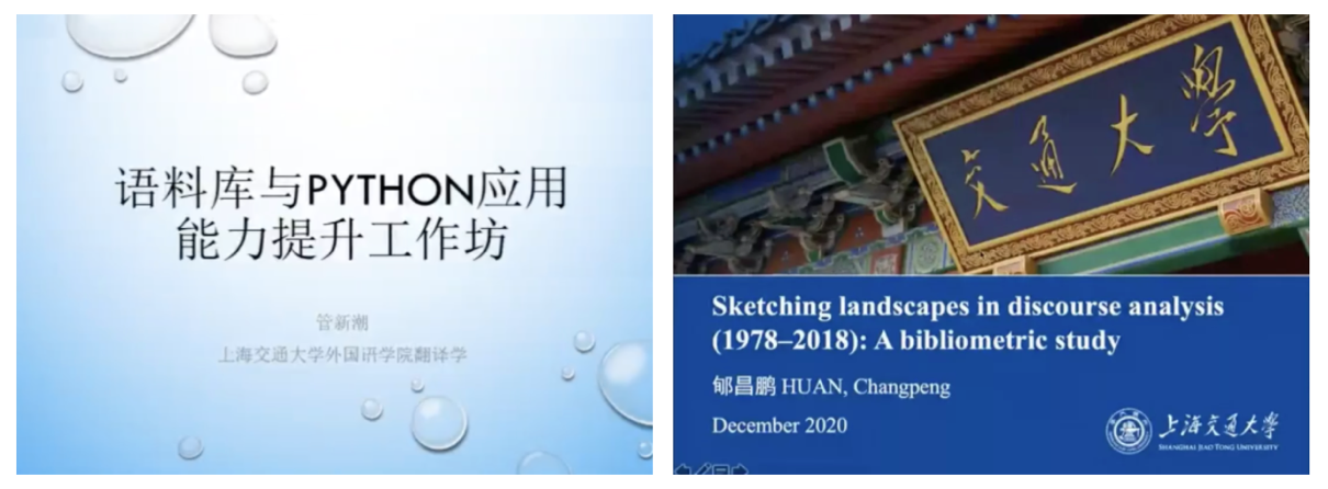 工作坊邀請上海交通大學外國語學院翻譯系副主任管新潮與副教授郇昌鵬兩位專家,以語料庫數(shù)據(jù)的讀取和輸入、語料庫零基礎應用、語料庫學術案例分析以及英語論文寫作中的Python數(shù)據(jù)提取與應用為主題,同與會人員進行了詳細的闡述與討論,同時演示了Python語言在實際操作中的運用。
