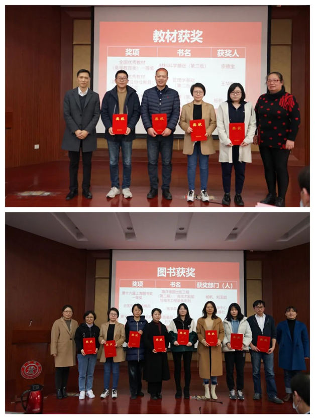 會(huì)議首先對(duì)2021年度獲獎(jiǎng)及先進(jìn)進(jìn)行表彰,頒發(fā)了2021年度優(yōu)秀部門、優(yōu)秀員工、特殊貢獻(xiàn)獎(jiǎng),高級(jí)職稱聘任,教材、圖書獲獎(jiǎng),黨建工作獲獎(jiǎng)以及集體和個(gè)人社外獲獎(jiǎng)等共計(jì)25個(gè)獎(jiǎng)項(xiàng)。