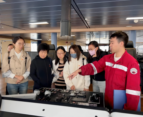 中國極地研究中心工作人員帶領(lǐng)黨員先后參觀了“雪龍2”號極地科學(xué)考察破冰船的甲板、月池、通用實(shí)驗(yàn)室、物理實(shí)驗(yàn)室以及操控臺等區(qū)域,介紹了“雪龍2”號科考船的特征、功能、航程和業(yè)務(wù)化觀測情況,并組織黨員一同觀看了中國第13次北冰洋科考、第39次南極科考紀(jì)錄片。黨員們了解到,“雪龍2”號作為中國第一艘自主建造的極地科學(xué)考察破冰船,凝聚了研發(fā)團(tuán)隊(duì)為趕超科考船研發(fā)建造世界先進(jìn)水平而付出的智慧與心血,融合了國際新一代考察船的前沿技術(shù)、功能需求和綠色環(huán)保理念,為有效應(yīng)對全球氣候變化對我國的影響提供了重要數(shù)據(jù)支撐。