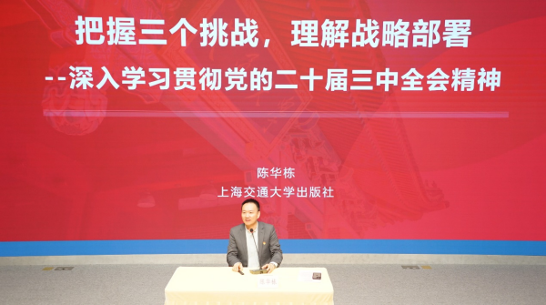 本次活動(dòng)既是巾幗精神的傳播,也是一次黨的二十屆三中全會(huì)精神的集中學(xué)習(xí)。陳華棟作為上海交通大學(xué)“新時(shí)代、新思想、新征程”理論宣講團(tuán)成員,圍繞“把握三個(gè)挑戰(zhàn),理解戰(zhàn)略部署”主題,講授黨的二十屆三中全會(huì)精神專題黨課。上海交通大學(xué)出版社第一黨支部書(shū)記錢方針與上海交通大學(xué)科技園聯(lián)合黨支部書(shū)記肖丁銘進(jìn)行共建簽約,共同奮進(jìn)新征程、建功新時(shí)代。