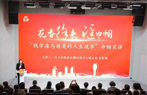 在“花香徐來(lái)·匯巾幗”宣講環(huán)節(jié),上海交通大學(xué)出版社主題出版中心副主任吳雪梅以“錢學(xué)森與蔣英的人生故事”為主題,通過(guò)一幅幅珍貴照片、一段段歷史故事,帶領(lǐng)大家領(lǐng)略跨越時(shí)空的緣分中,偉大的科學(xué)家與藝術(shù)家相濡以沫的幸福人生,深刻感受他們強(qiáng)烈的家國(guó)情懷、美滿幸福的婚姻生活,以及相互扶持、無(wú)私奉獻(xiàn)的高尚品格。