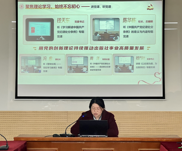 本次組織生活會(huì),由錢方針就第一黨支部2024年工作情況和2025年工作計(jì)劃進(jìn)行匯報(bào)。她對2024年度支部“三會(huì)一課”和主題黨日活動(dòng)情況、黨紀(jì)學(xué)習(xí)教育、支部引領(lǐng)業(yè)務(wù)發(fā)展等方面進(jìn)行總結(jié),還從深入貫徹中央八項(xiàng)規(guī)定精神學(xué)習(xí)教育、發(fā)展黨員工作、支部品牌建設(shè)及黨建活動(dòng)等方面對2025年工作計(jì)劃進(jìn)行詳細(xì)闡述。她表示,2025年支部將繼續(xù)以學(xué)“習(xí)”坊為平臺,以“主題黨日活動(dòng)”為抓手,持續(xù)推動(dòng)“書香黨建”品牌建設(shè),與出版業(yè)務(wù)、科技前沿更加緊密結(jié)合。