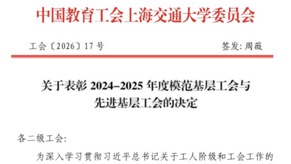 為深入學(xué)習(xí)貫徹習(xí)近平總書記關(guān)于工人階級和工會工作的重要論述,全面貫徹黨的二十大和中國工會十八大精神,把握新時代工運事業(yè)和工會工作的特點與規(guī)律,進一步加強基層工會自身建設(shè),上海交通大學(xué)校工會在全校組織開展了2024-2025年度基層工會考核評比工作。